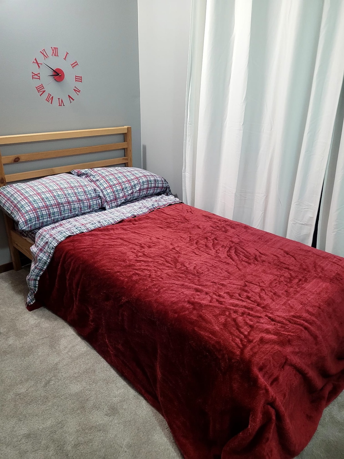 Newly Renovated / Bright Suite in Richmond with Jet tub. Great Location 5 Min. to Downtown Transit 1/2 block. This Large bedroom w/walk on Bathroom, Jet tub. Queen w nice Linen Duvet Large walk-in closet. Stainless steel Fridge, Stove, Dishwasher, Microwave, Washer and Dryer. Furnished, Dresser, Large Couch, 2 TV's, Dinning Table, Chairs, Dishes, Pots, Pans, Cutlery, Towels. WiFi /TV Movie, Sports Channels. Great Back Yard. Gas BBQ, Outdoor furniture. Huge Park 1/2 block away.