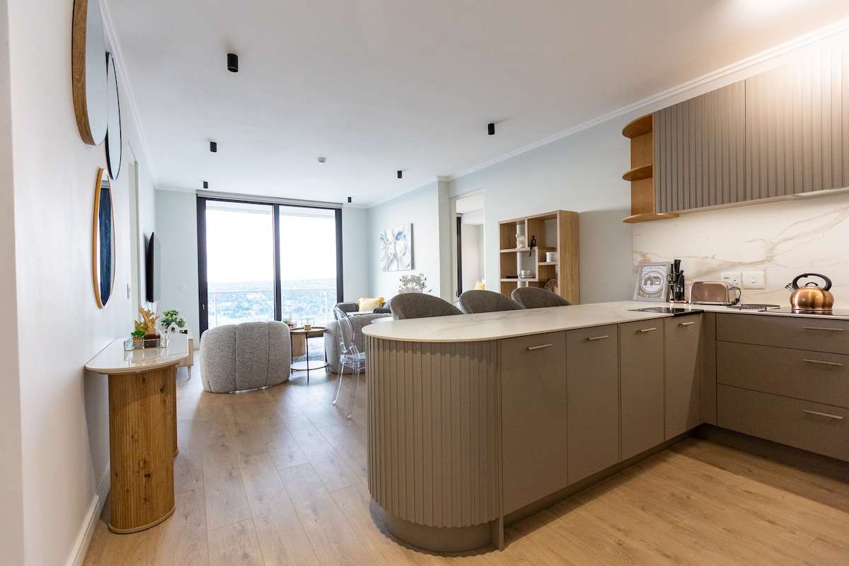 Riviera Château de Rêve – Phoenix's Gîte @ Ellipse Waterfall. Luxury 2-bedroom apartment with breathtaking views, spacious living, top-tier finishes. Features: balcony with comfy chairs, sliding doors, Smeg kitchen, 75" Smart TV, Disney+, Netflix. Amenities: Life Day Spa, TriFit Gym, Luna Club, gyms, parking, fast wifi. Near Mall of Africa, Netcare Hospital. Business & leisure blend in a vibrant community with iconic architecture & luxurious amenities. Lifestyle exceeds expectations 😊