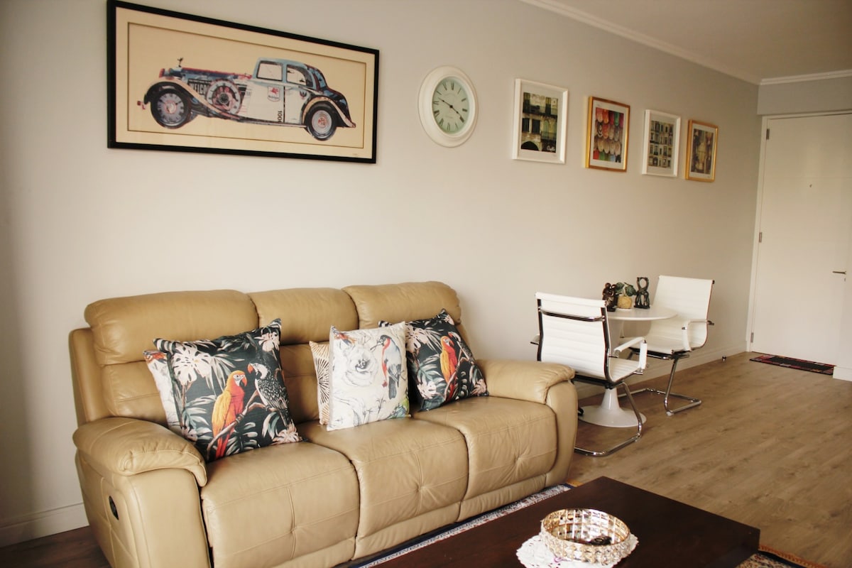 Modern, fully furnished, safe and quiet executive apartment in the heart of Melrose Arch. It's the perfect city getaway, and is suitable for both leisure and business travel. Uncapped Fibre Internet, safe and tranquil surroundings, a 65” TV (lounge) as well as a 40” TV (bedroom) both smart. Conveniently located within Melrose Arch shopping precinct with access to all stores and restaurants. Back up generator in the building, safe and secure private parking with 24 hour security 😊