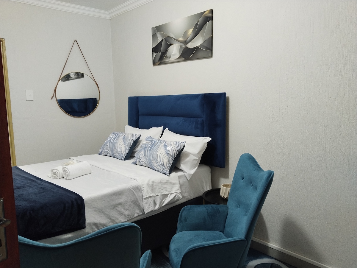 D's Studio is a Luxurious spacious apartment with 3 full bedrooms and en-suite bathrooms. It has a fully equipped kitchen and will make your experience a home away from home experience. We have a generator so you will never be without power. Their is a lovely open garden and outside area to relax in. I love meeting new people and would love to host you and your family & Friends We are a mere 6km from the O R Tambo airport & Emperors Palace Casino and about 2 km from East Rand Mall..