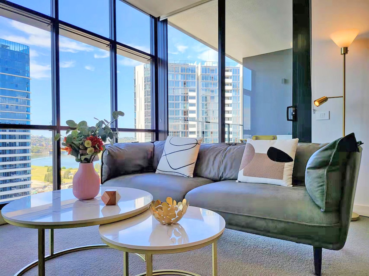 Magnificent view of sunset & Parramatta river from the balcony. One bedroom apt with high quality King and Queen size beds. Suitable for 1 to a family of 4. Gas stoves, oven, microwave, airfryer, dishwasher, coffee machine, big fridge are all provided. Restaurants, Cafes, supermarkets are just across the road. 2 mins walk to the ferry towards the city, free shuttle bus Mon-Fri to Rhodes train station or public bus services runs daily. Under 10 mins drive to any stadiums in Sydney Olympic Park.
