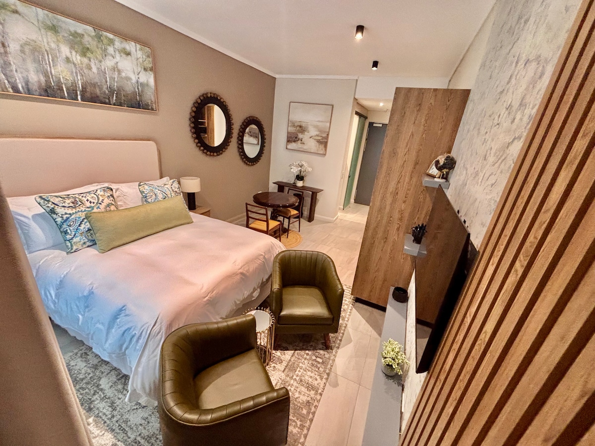 Escape to this elegant 1-bedroom Fourways penthouse, a sun-filled sanctuary for two. Enjoy stunning views from your private balcony in a secure estate with a pool and gym. This north-facing apartment offers a refined city base with modern Bosch appliances, a Smart TV, and a dedicated workspace. Perfect for focus and relaxation, this stylish retreat provides a seamless experience with self-check-in and free secure parking.