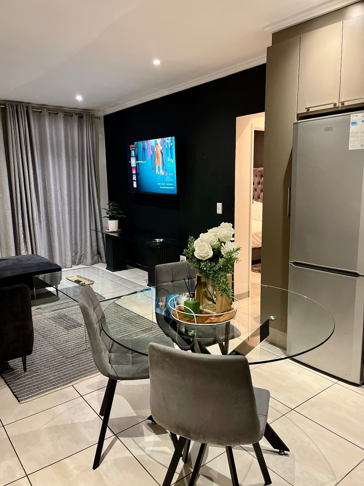 Experience upscale living in our apartment located in a secure, gated community in Midrand. With modern design and artistic touches, this stylish space offers a fully equipped kitchen with a gas stove, high-speed WiFi, a washer and dryer, and two workstations. Enjoy access to the communal pool, braai area, kids’ playground, and gym. Plus, stay powered during load shedding with our inverter. Welcome to your tranquil and secure sanctuary in Midrand. IDs required for access