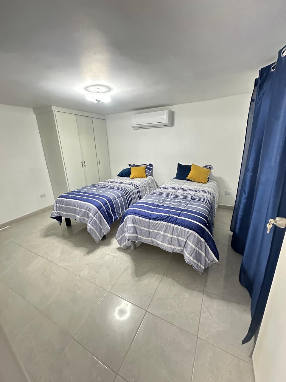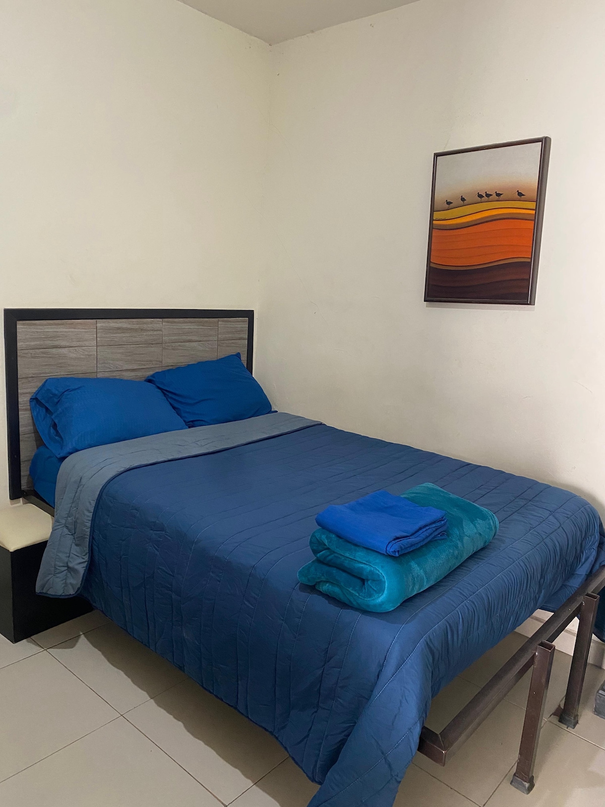 Este departamento es ideal para grupos pequeños, familias o parejas. Al entrar encontraras la cocineta y área de comedor comedor para 4 personas y un pequeño espacio para ver la TV. Hay 2 habitaciones: La primera habitación con una cama matrimonial y suficiente espacio para acomodar tus cosas. En la segunda habitación hay 3 camas individuales dividido con un medio muro para darles mas privacidad. Un baño completo y un pequeño espacio de lavado.