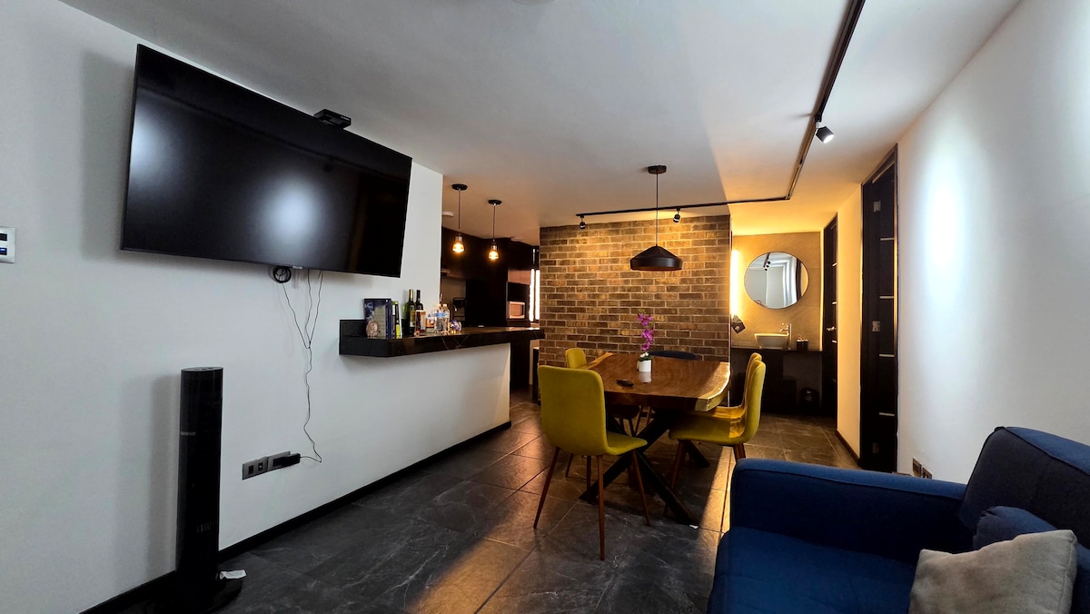 Es un departamento nuevo tipo loft de estilo contemporáneo amueblado por un diseñador de interiores con la finalidad de que puedas sentir un nuevo concepto de lujo y la comodidad al alcance de todos con la intención de que tu estadia sea agradable. Se pedirá identificación de los huéspedes a la llegada.