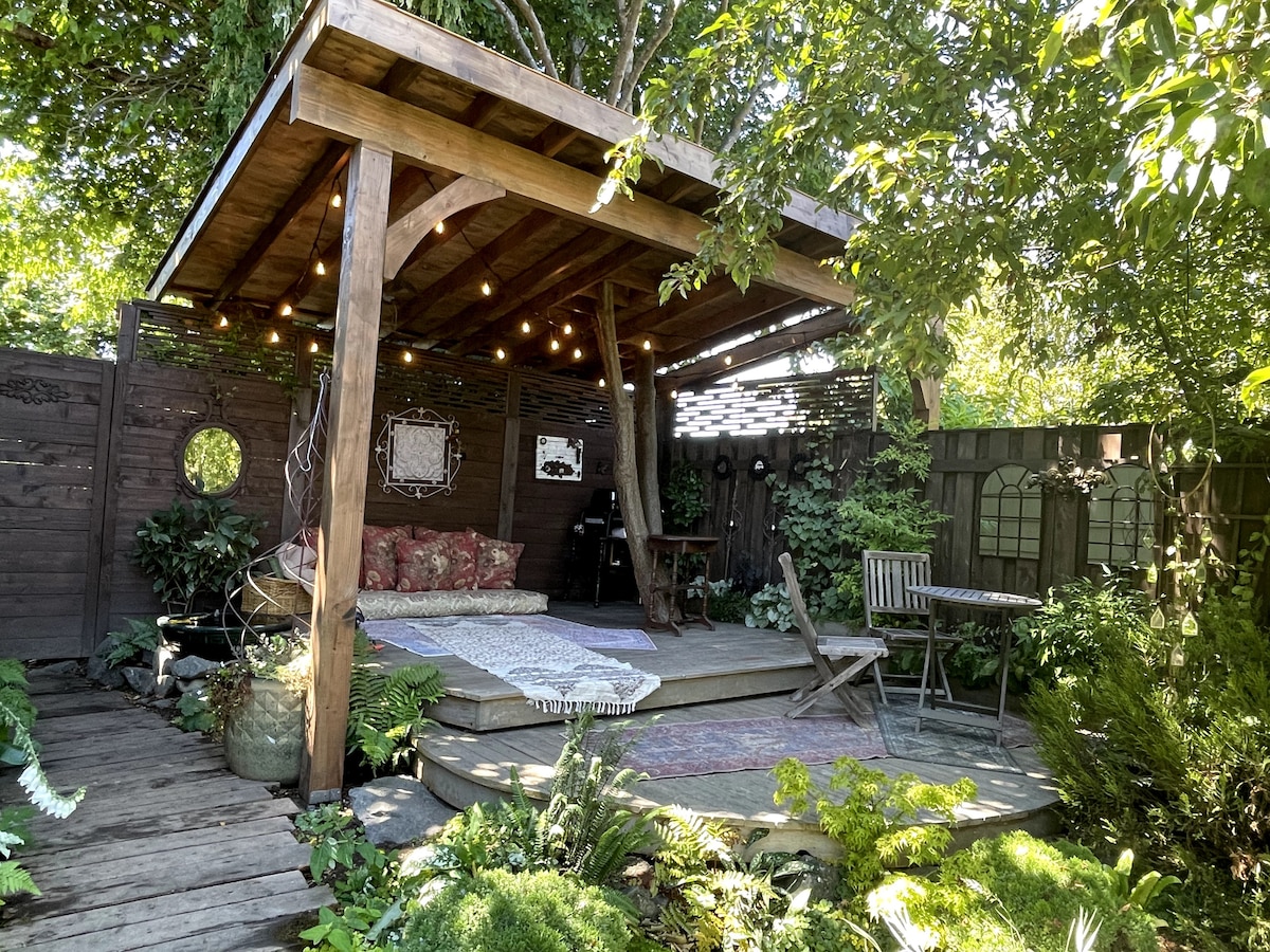Cute, clean and cozy! We are dedicated superhosts who live on the property. The suite is totally private with no shared walls or bathrooms. The bathroom is a separate space with a washer and dryer. The suite is totally set up: board games, puzzles, a lending library, and an extensive DVD selection. Fast WIFI and an array of snack and drink options for when you arrive! The private patio is perfect for enjoying a cup of coffee or letting pups play. We can't wait to host you!