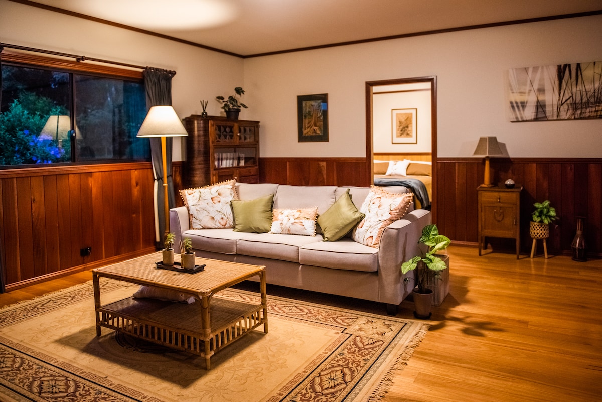 No cleaning fee! The Lily Pad is large (150sqm with A/C) and occupies a tranquil lakefront setting only 5 min from Emerald Beach, 10 min Woolgoolga and 20 min Coffs Harbour. The fully self-contained luxury cottage is ideally suited to couples wanting to celebrate a special occasion or to enjoy a short stay retreat. A sofa bed is available at additional cost. Pets accepted, by negotiation. A breakfast hamper provided for the first morning. Complimentary beer, wine or bubbles on arrival!