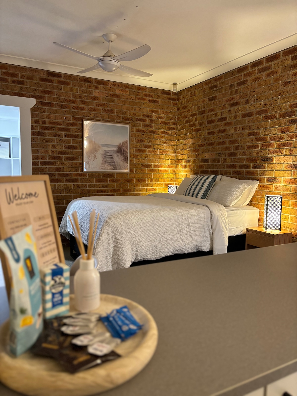 Studio 21 is a super spacious waterfront apartment situated on the pristine coastal quays of Yamba, just 7 minutes drive from the beach. Enjoy access to the waters edge from the King bedroom overlooking the Canal....beach towels are provided if you fancy a dip! The terraced deck area is perfect for casting a line or launching the provided kayak for a paddle. Split cycle air conditioning will keep you comfortable. Premium linen and towels included for your stay. Complimentary Nespresso and tea.
