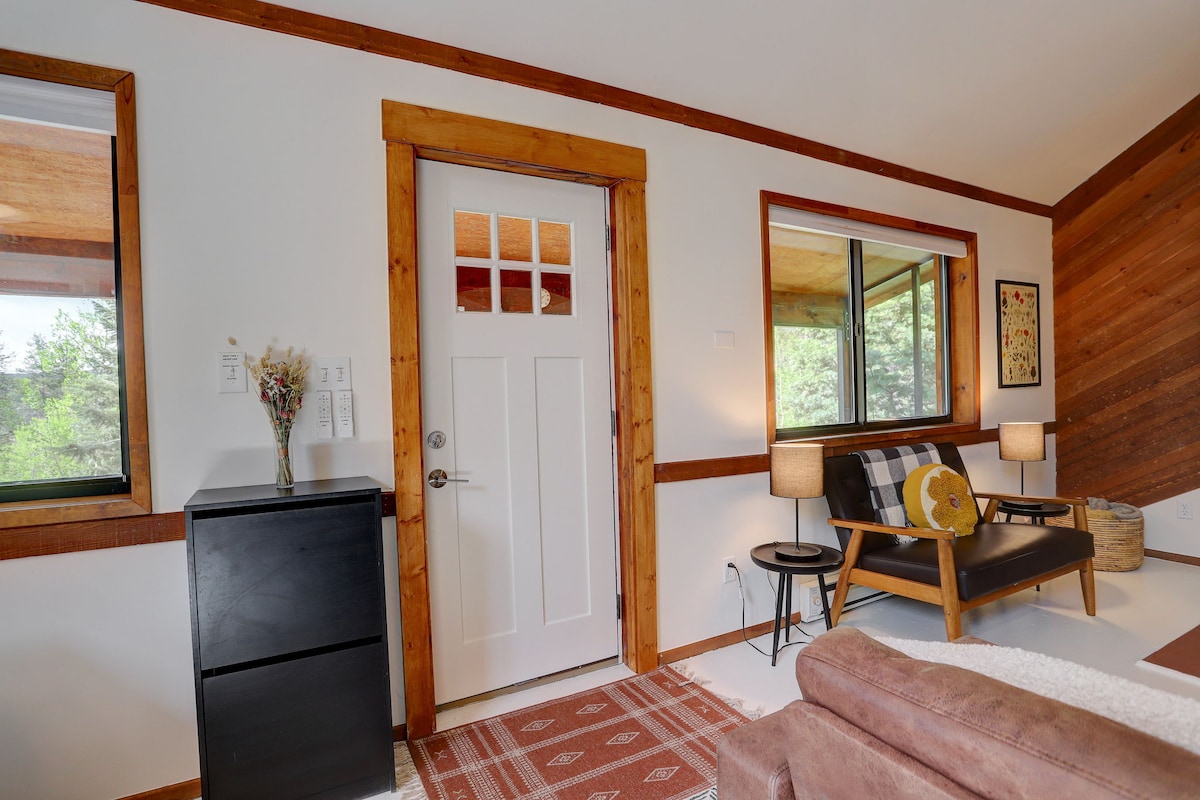 Cozy up in a quaint and charming 1960s A-frame cabin tucked in an aspen grove. Immerse yourself in the evergreen forest scape through the wide sunny windows inside our cozy space, featuring a Scandinavian inspired kitchen, wood burning stove, big-screen projector, enjoying the outside world within. Outside, hear sounds of our trickling creek while you’re enjoying the fire pit, hot tub, or grill patio in the middle of the Rocky Mountains. We’re 20 mins from Evergreen lake.
