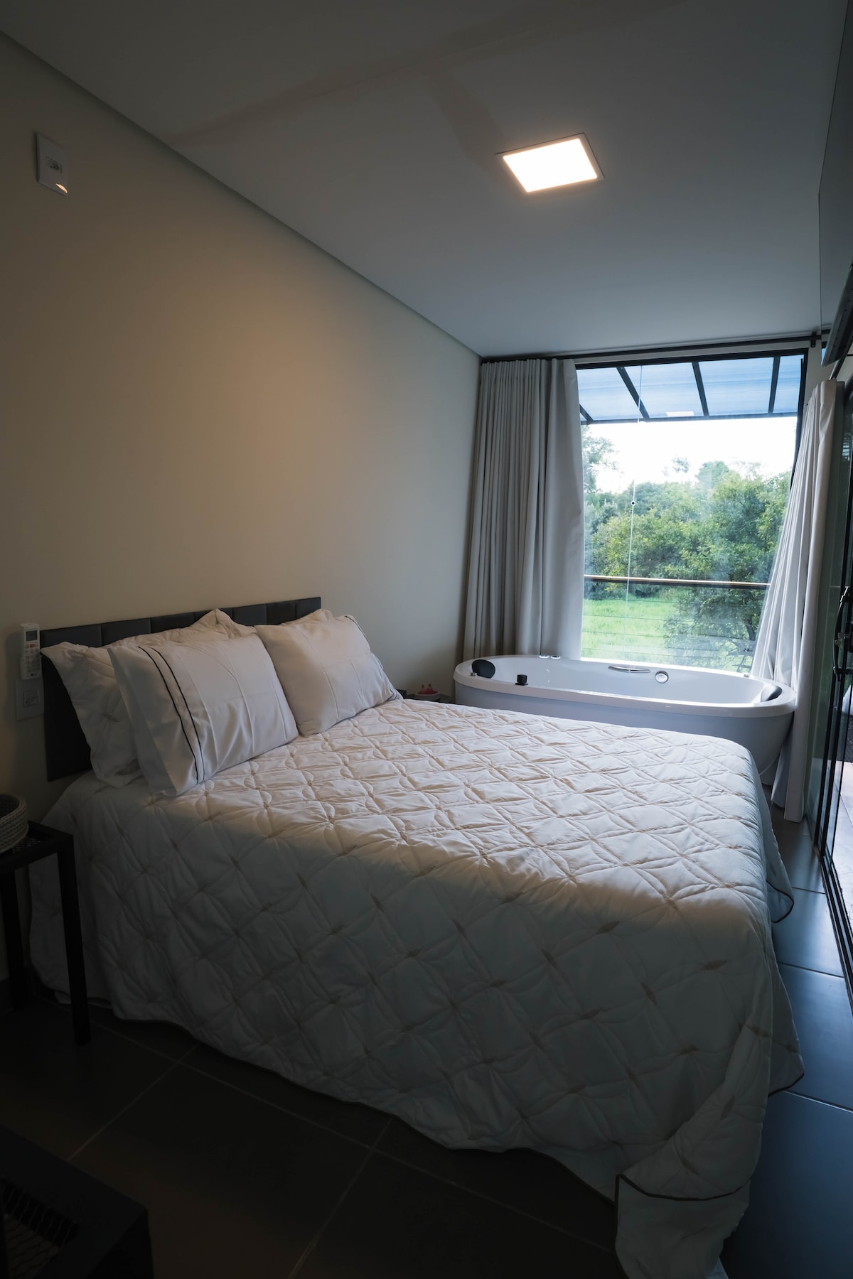 O Loft São José é uma cabana completa e luxuosa com fechamento todo em vidro ( teto e paredes ), cortinas motorizadas de teto, projetor de 100'', Banheira de imersão interna, lareira interna, fire pit, jacuzzi externa, sauna e lounge externo tudo isso construído sobre um deck de madeira com vista para a mata e amplo espaço externo, para curtir o contato com a natureza com todo muito conforto, luxo, privacidade e tecnologia. Seus melhores momentos estão aqui!