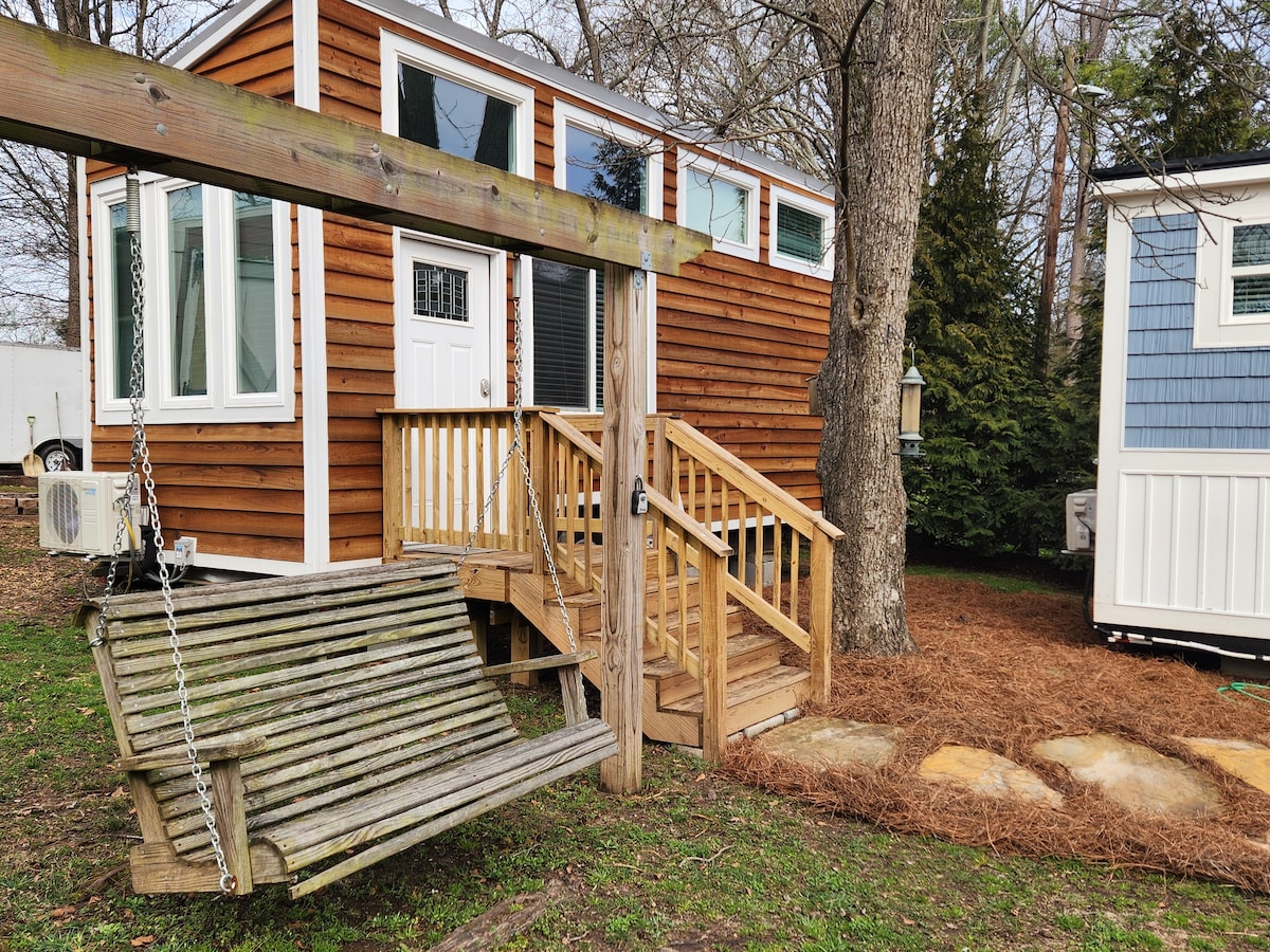 Come enjoy a slice of country heaven without leaving the city. Our tiny home is surrounded by beautiful views and charming farm animals. A truly unique and refreshing retreat. Wake up with a fresh cup of coffee on the front porch. Then, collect some fresh eggs from the chicken coop and whip up a tasty breakfast in the full kitchen. Relax and enjoy farm life only 7 minutes from historic Marietta Square. Home to restaurants, bars, and events. Truist Park is only 20 minutes as well!