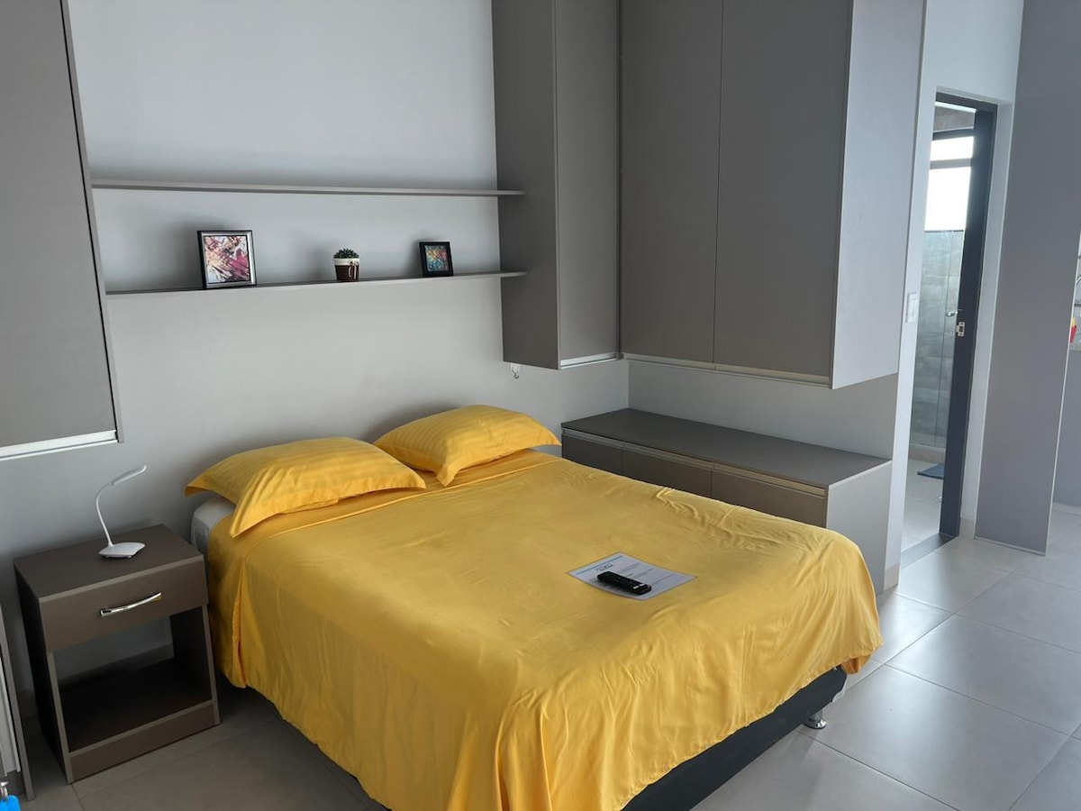 [español, english, français] Luminoso y confortable monoambiente nuevo, en la mejor zona de Cochabamba cerca de centros comerciales, restaurantes, parques, entidades financieras, mercados, supermercados, bares. Areas comunes incluyen piscina infinita (atemperada los fines de semana y feriados), churrasquero, lavadoras gratuitas, TV Netflix. Estaremos encantados de recibirles y hacerles pasar una estadia placentera.