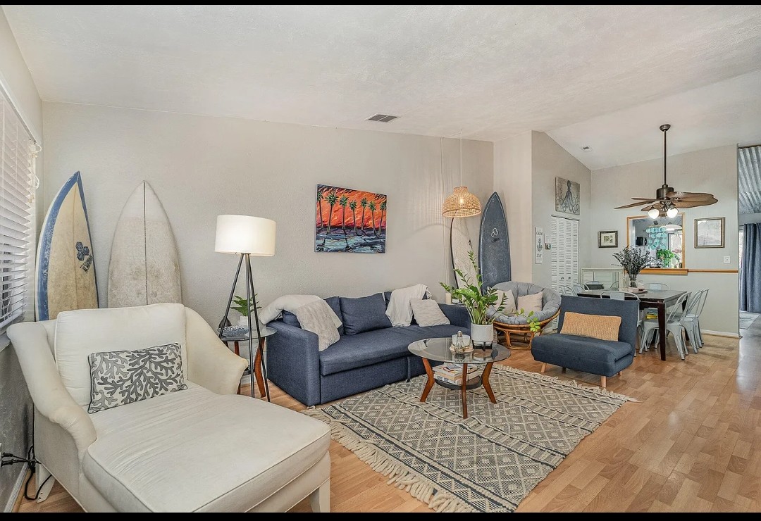 This downtown Cocoa Beach apartment is the perfect beach getaway, close to all the action! Located steps from the beach and walking distance to restaurants, bars, and local shops! It is a quick drive to the beautiful Banana River, a 14-minute drive to Port Canaveral, and a 33-minute drive to Kennedy Space Center Visitor Complex. The surfer style decor will make you feel like a local.