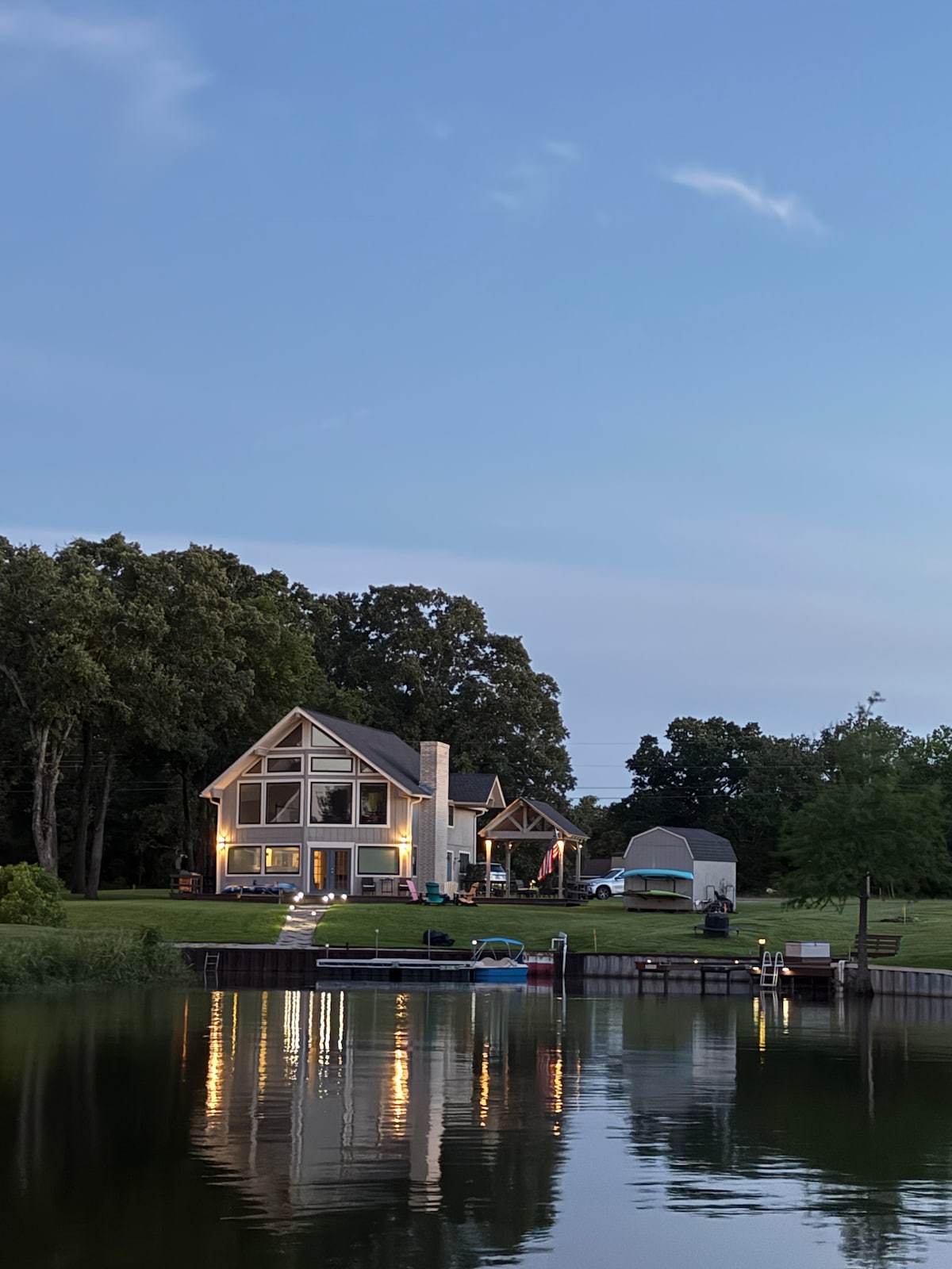 ★☆ ABOUT OUR HOME ☆★ From the moment you arrive, you’ll be captivated by breathtaking lake views and the expansive deck, perfect for relaxation. Nearly every room in the home boasts stunning, open-water views, creating a truly serene retreat. Enjoy family-friendly indoor and outdoor games, or take to the lake with the provided inflatable paddleboard and kayak. Stroll down the private pier to fish, swim, or dock your own boat—rental options are also available nearby.!
