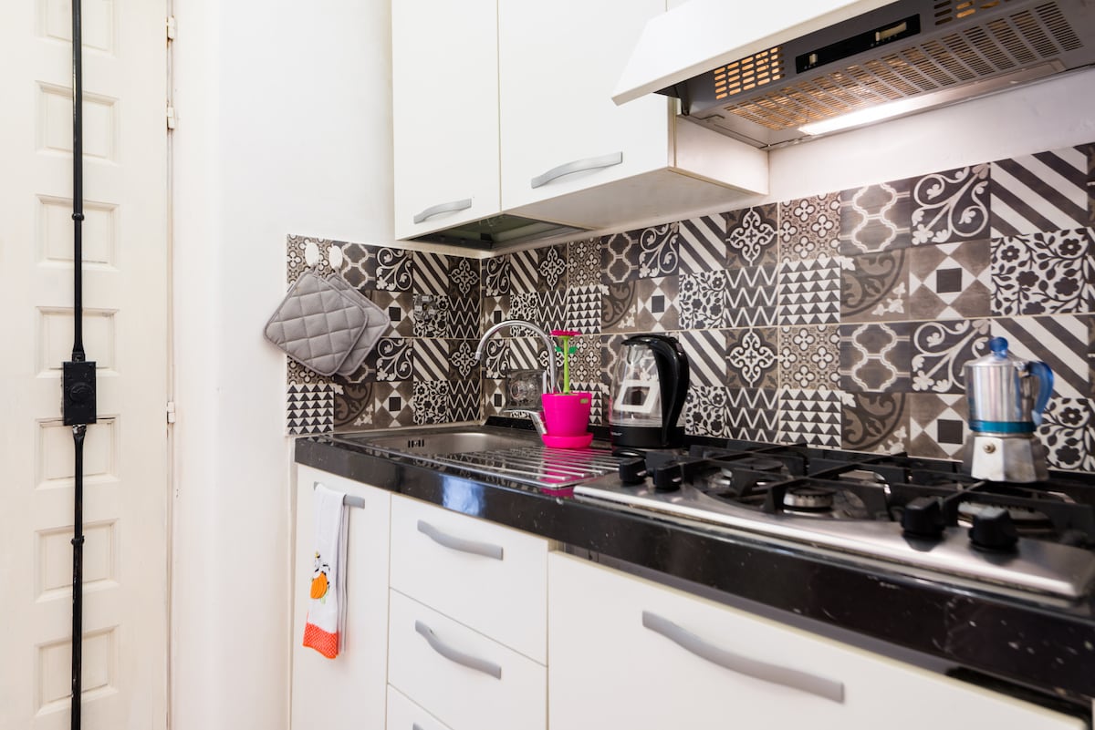 Cosy and nice one room studio with wooden floor, kitchenette, one french bed (140 cm), table , sofà, wardrobe and large bathroom with bathtub and window. Air-condition, washine machine, free wi-fi. Ideal place for one or two people to spend some days in Rome, in one of the most fashionable area of the historic center. Fourth floor with elevator. There is a first entrance shared with me and others people. The studio is indipendent. No self check-in, key-box Licence n° - CIN : IT058091C2E3NW5GLB