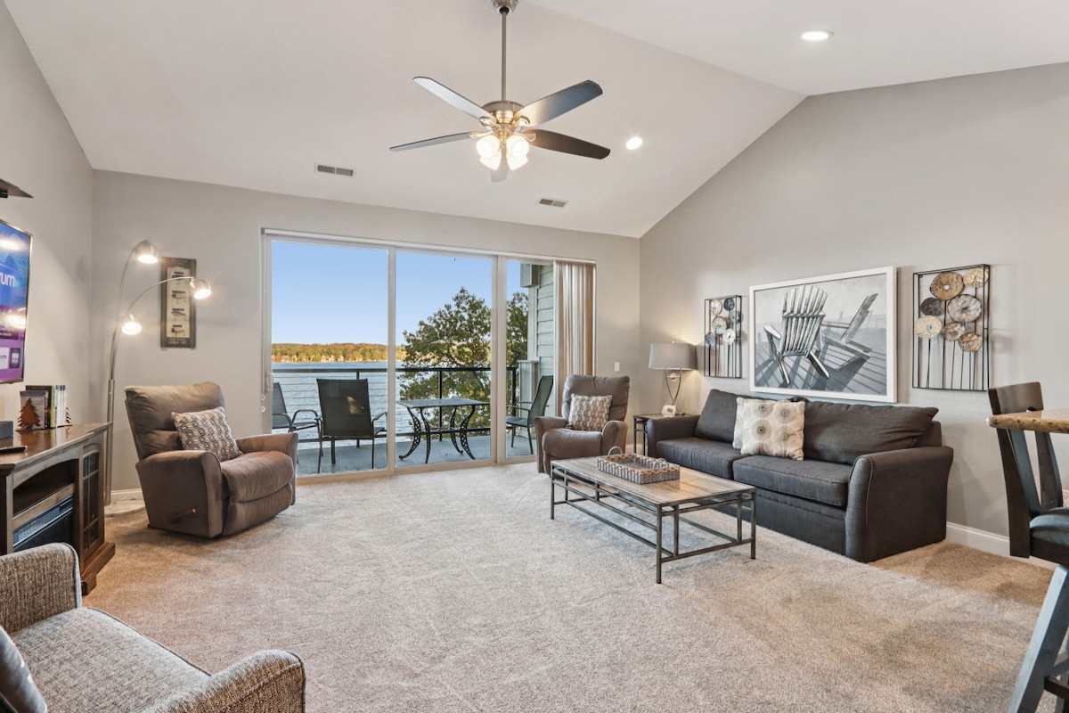 Upgrade to our Noah's Ark package after booking! NO SMOKING This waterfront studio condo at Delton Grand is a perfect getaway spot for any couple. Our guests enjoy waterfront views and all of the amenities at Delton Grand, including indoor and outdoor (seasonal) pools, indoor hot tub, 2 beaches, fishing docks, gas grills, and fire pits. Being within walking distance to Del-Bar, Embers, and Summer House makes this property ideal for couples coming to enjoy the areas finest restaurants.