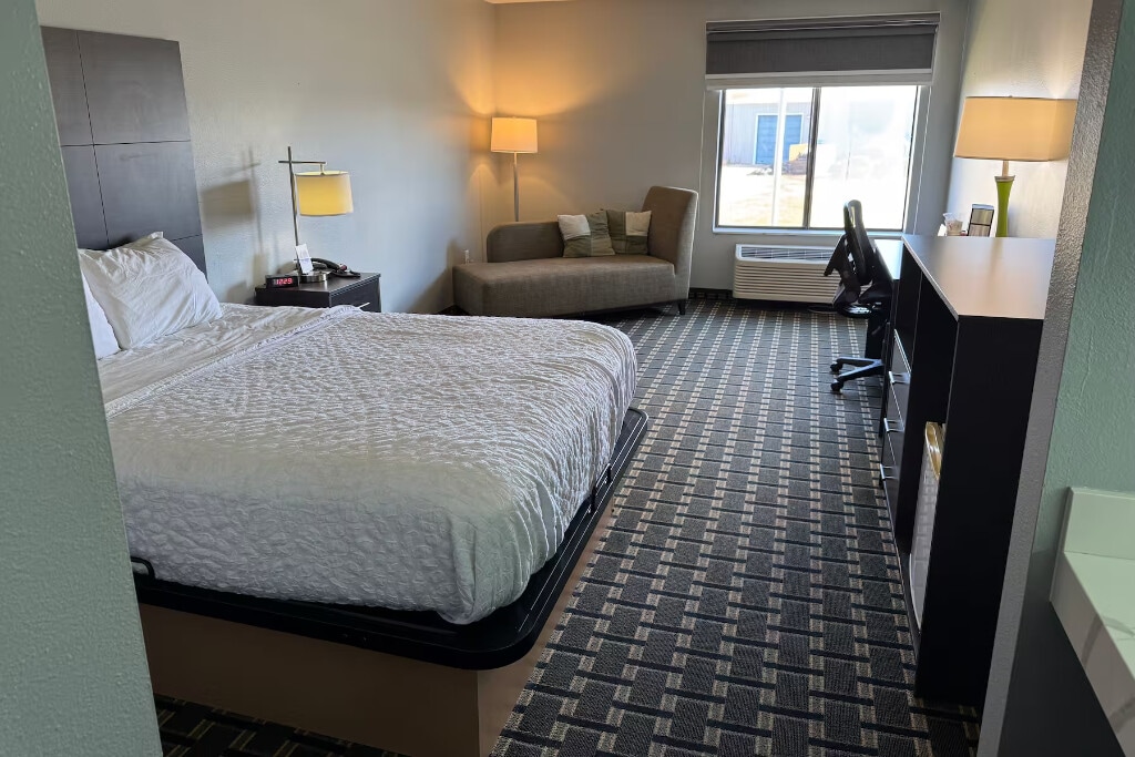 Located off Highway 151, AmericInn Columbus is a short drive to Madison and near local parks, antique shops, and bike trails. This room features a queen bed and a functional layout perfect for solo travelers or couples. A great stop for road trippers or weekend adventurers.