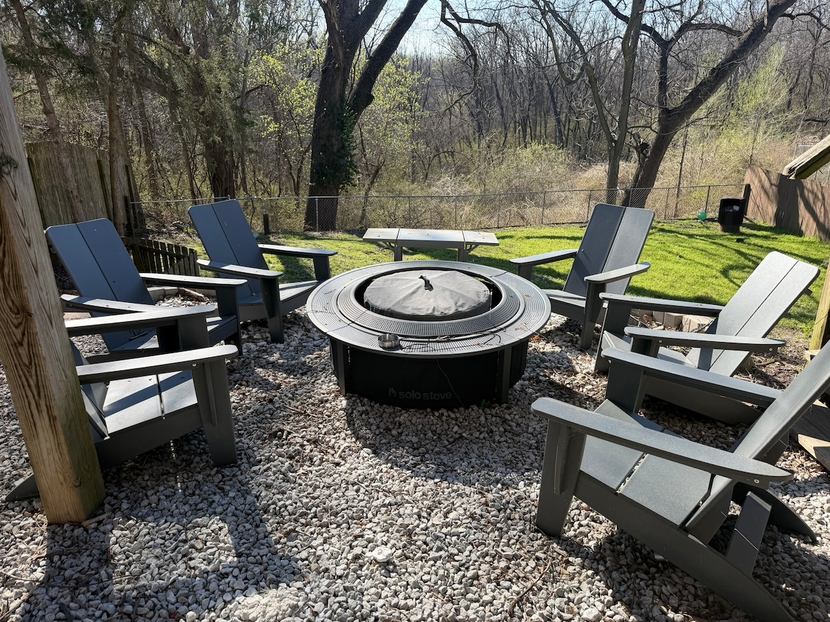 Enjoy this large walkout basement studio apartment that will take you back in time. Nostalgia galore, this studio features an electric and bass guitar as well as many artifacts from the 70's. This space is in our basement and has a private entrance in our fully privacy fenced backyard with a covered porch. Well behaved dogs welcome. Kitchenette includes fridge, toaster, air fryer, microwave, and coffee maker. Perfect for a quick couple's getaway or a single traveler.