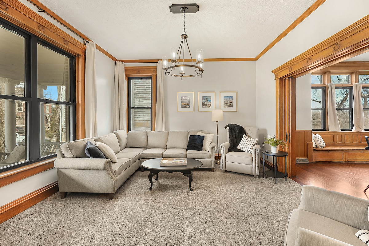 This second story apartment for 4 has 2 bedrooms, 1 bathroom, fully-equipped kitchen, and a living room with view of the Capitol, which is less than 1 mile away! Enjoy shops like Three Story Coffee, Central Dairy, or Ice Cream Factory (all within walking distance) while exploring local favorites like downtown JC, Katy Trail, the Capitol, or Runge Conservation. Our area is a fun, urban spot close to historic downtown.