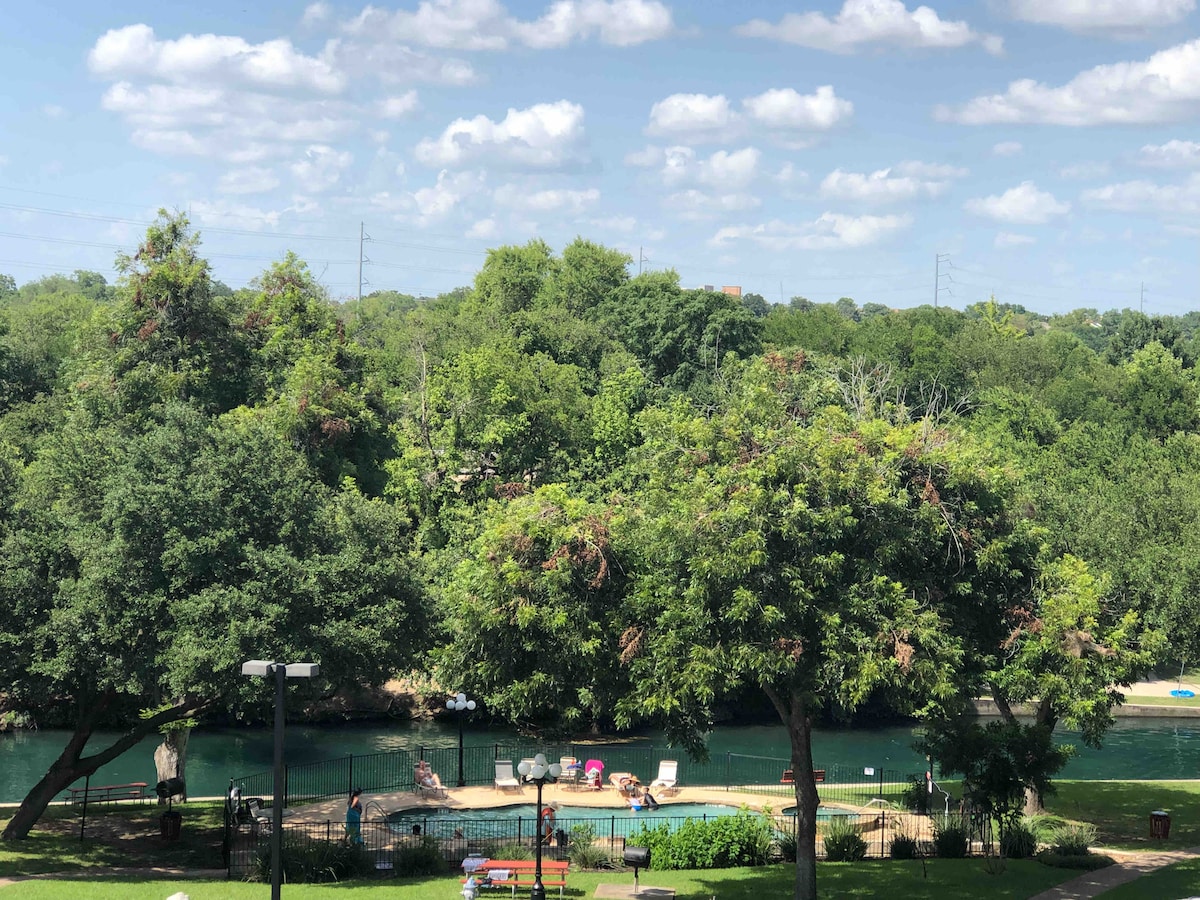 Located in Historic Gruene Texas with stunning views of the Guadalupe River from your private balcony. This spacious three bedroom condo has everything you'll need to feel right at home with high speed internet, cable TV, full washer and dryer. Tucked away on the edge of the Guadalupe River you can enjoy direct river access, lounge by the waterfall pool, or take a stroll to enjoy all the shopping, restaurants, bars, and nightlife that Historic Gruene has to offer.We look forward to hosting you!