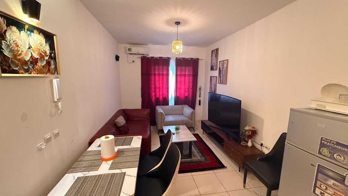 Appartement à 10 min de l’Aéroport – Confort & Élégance. Entièrement rénové, ce logement moderne et lumineux vous accueille à 10 minutes de l’aéroport international de Conakry Gbessia et à 500 m de la plage Bénarès. Profitez d’une localisation stratégique, d’une grande cour fermée sécurisée et d’un confort moderne avec climatisation, télévision avec abonnement Canal, literie haut de gamme et cuisine équipée. Cosy et chic, idéal pour un voyage d’affaires ou une escapade en famille.