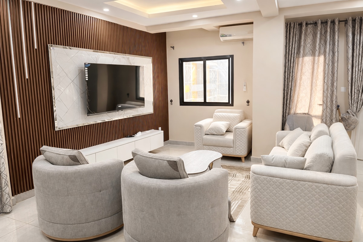 Appartement moderne 2 chambres situé à Gbessia Port 2, à seulement 10 min de l’aéroport et 5 min de la plage de Bénarès. Idéal pour voyageurs d’affaires ou familles, il offre un grand salon lumineux, deux chambres avec salle de bain, cuisine équipée, Wifi rapide et parking sécurisé. Profitez d’un séjour confortable, calme et parfaitement situé pour vos déplacements à Conakry.