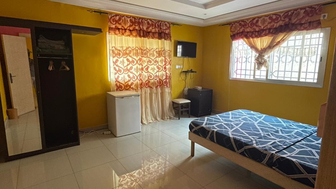 Atmospheric, clean, elegant, well-kept private room for your stay in Guinea Conakry. Colorful house with a green garden and balcony with plants and a hammock. Our house is located in the quiet and very safe neighborhood of Kipé. Centrally located at Club Kipé and convenient distance from the airport. Walking distance to the beach and restaurants. There are a total of 4 rooms for guests in our house.
