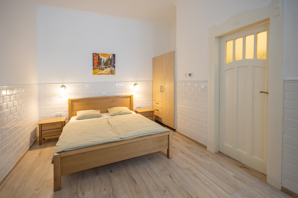 The stylish one bed huge 75sqm apartment has been fully renovated with stylish design in a mid-century beautiful house. The apartment is on the 3rd floor with an elevator in a very quiet area in the building. Located in one of the most fashionable areas of Budapest with city’s best bars, pubs, restaurants, museums, galleries, designer clothing boutiques, shops and historical architecture at your doorstep. The apartment has one bedroom, a living area, fully equipped kitchen and one bathroom.