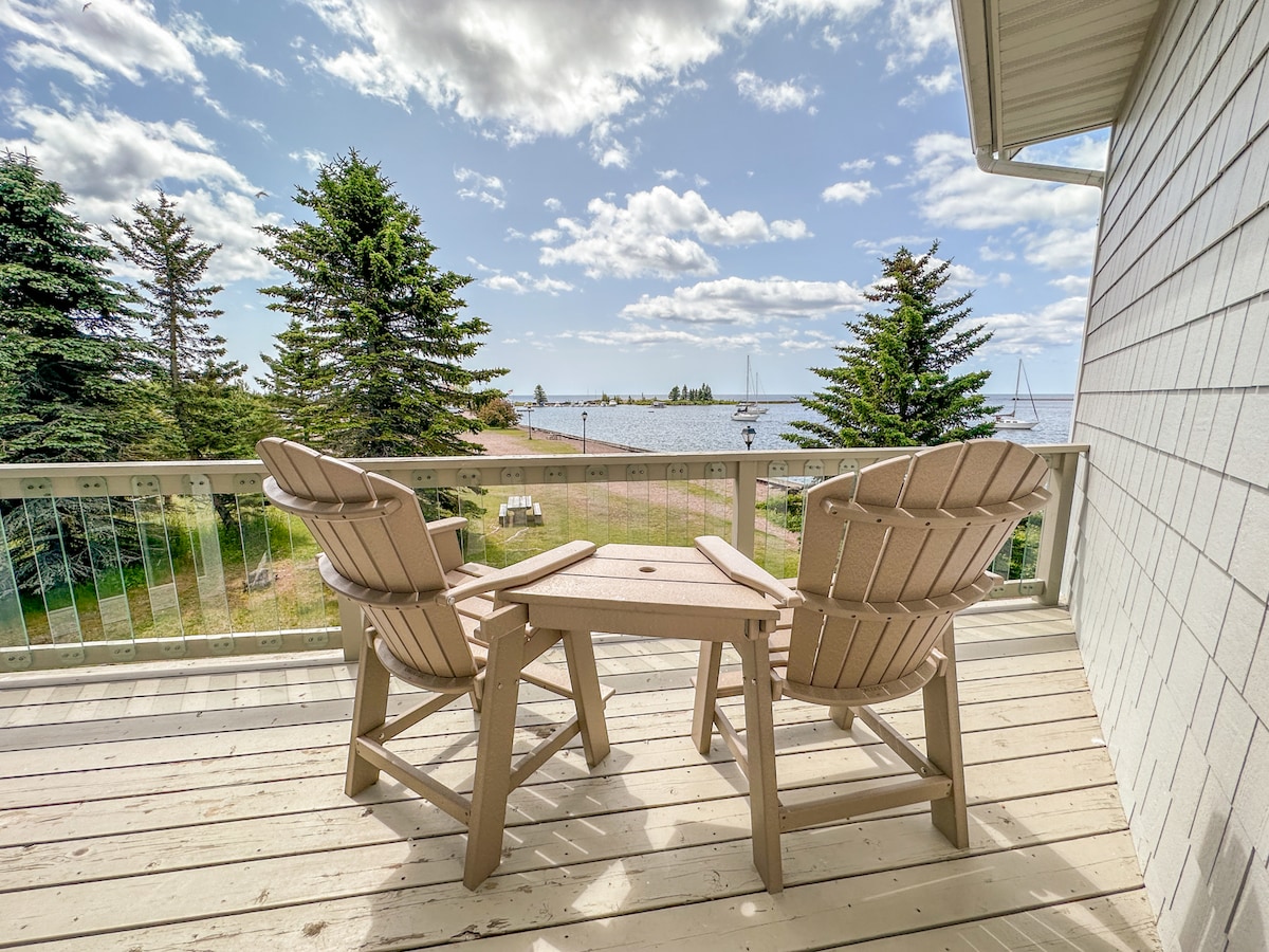 The vacation townhomes located in Grand Marais at Cobblestone Cove are the premier waterfront vacation destination along the North Shore of Lake Superior. When you stay at Cobblestone Cove Villa 6, you'll enjoy the scenic beauty and many moods of Lake Superior. You'll also be within easy walking distance of everything to see and do in Grand Marais at this beautiful and modern 2-bed, 2.5-bath townhome.