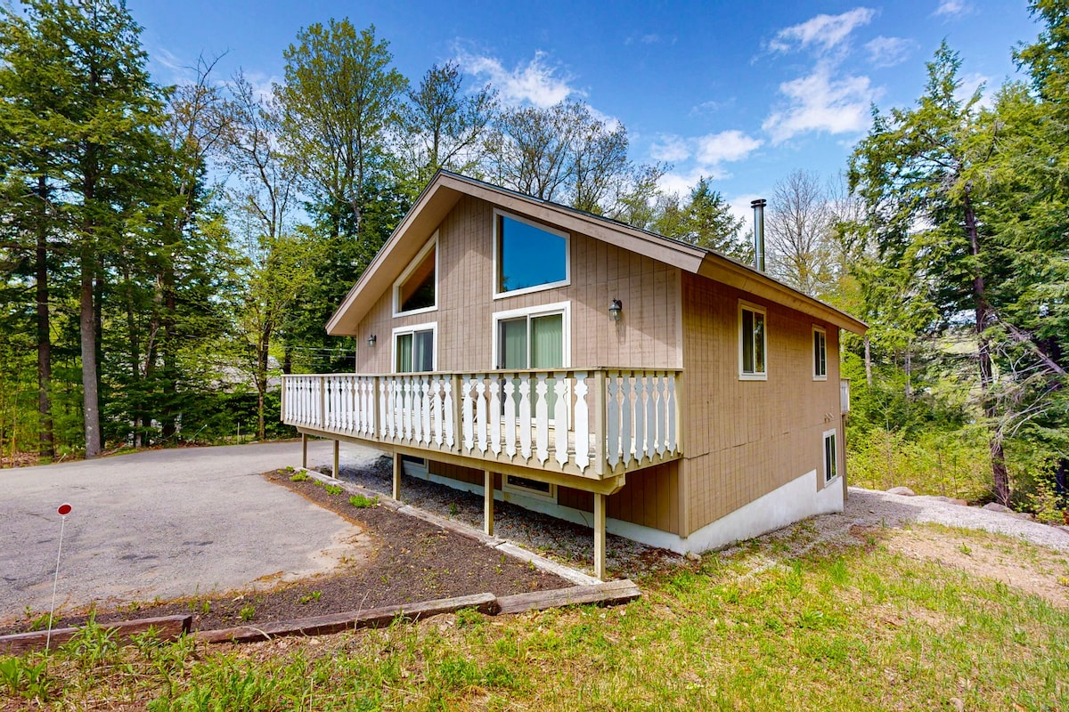 Relax at Valley Vista Lodge, our family-friendly White Mountains chalet with panoramic mountain views and 3,000+ sq. ft. of space. Relax in the private, covered hot tub, cozy up by the fireplace, or spread out across five bedrooms. Perfect ski rental near Attitash, Cranmore, and Wildcat, just 3 minutes from Story Land and 10 minutes to North Conway shopping. Ideal for multi-family getaways, ski weekends, and adventures in the mountains year-round.