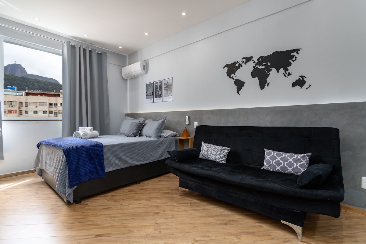 Este lugar único tem um estilo próprio, acabou de ser reformado, vista lindinha para o Cristo Redentor, rústico e simples ao mesmo tempo que confortável. Terracinho agradável com Ofuro, churrasqueira e espaço gourmet. Suíte principal ampla com banheira de hidromassagem Cozinha integrada a sala, sensação agradável de amplitude. No coração de Copacabana, perto do metrô, comércio, supermercados e a uma quadra da praia.