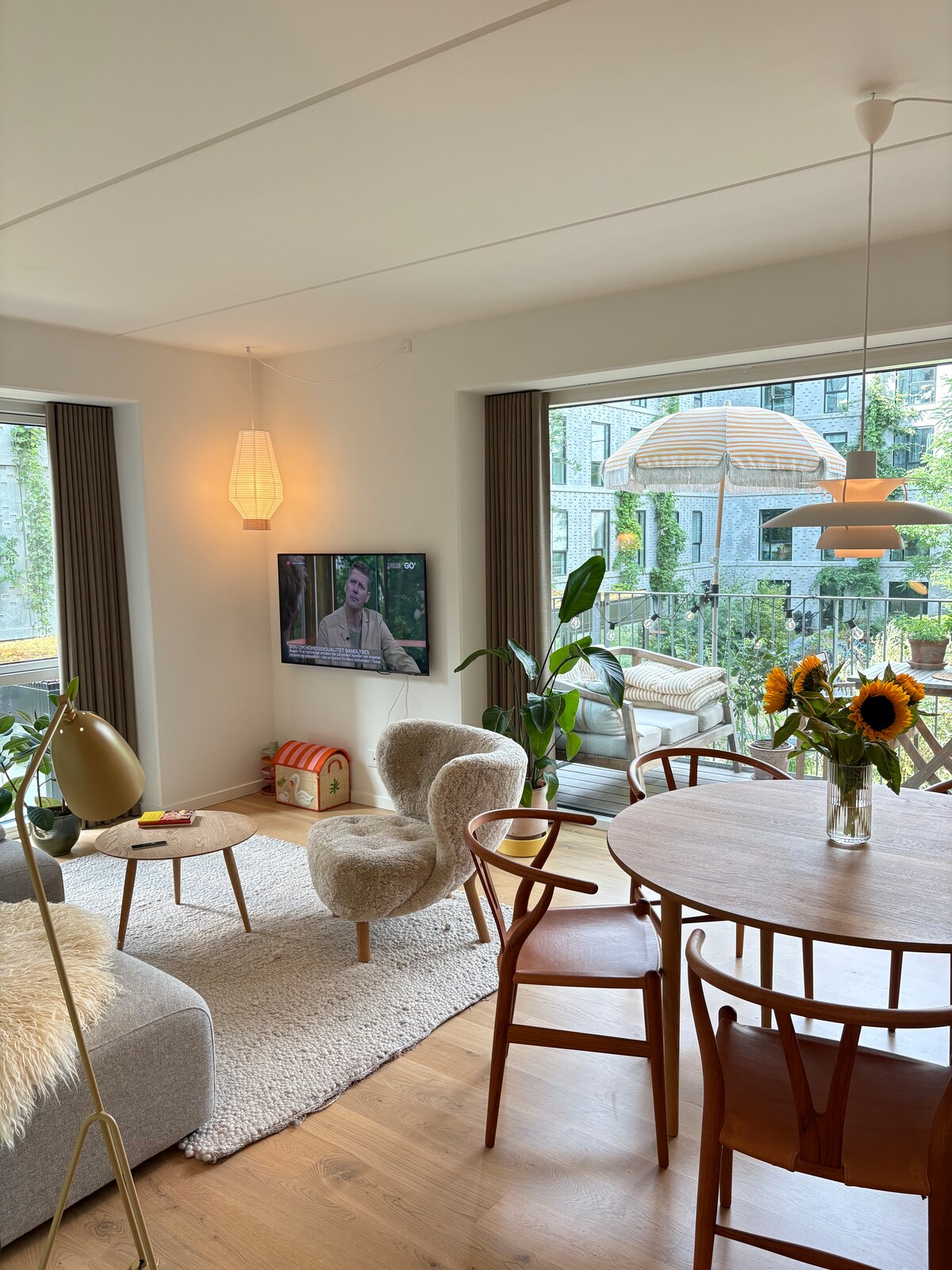 Kick back and relax in this stylish, yet cozy apartment with a view of the garden “Kammas Have” in the up-and-coming Carlsberg area. You have shopping, metro, two scenic parks and restaurants right around the corner. The apartment has two separate bedrooms, a specious common room/kitchen and a lovely balcony. It is perfect for couples, friends or a young family, as the second bedroom has a sofa bed that can fit two. The building is from 2021 and has an elevator and paid parking in the basement.