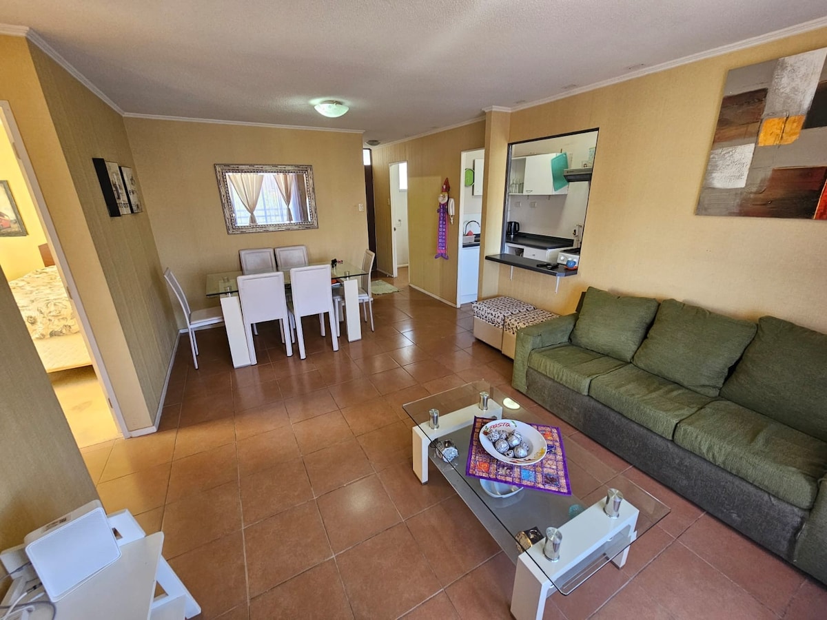 Cómodo departamento con excelente ubicación. Cercano a supermercados, estaciones de servicio, transporte publico a la puerta, casino Antay y cine. Cuenta con seguridad 24 horas, estacionamiento, televisión por cable, wifi, lavadora, equipo de música, dispensador de agua. Habilitado para 4 personas. Las principales playas de la zona se encuentran aproximadamente a 45 minutos. Departamento para visitas por vacaciones y/o trabajo.