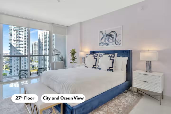 迈阿密海湾公园豪华公寓,2卧2卫,加大双人床,泳池