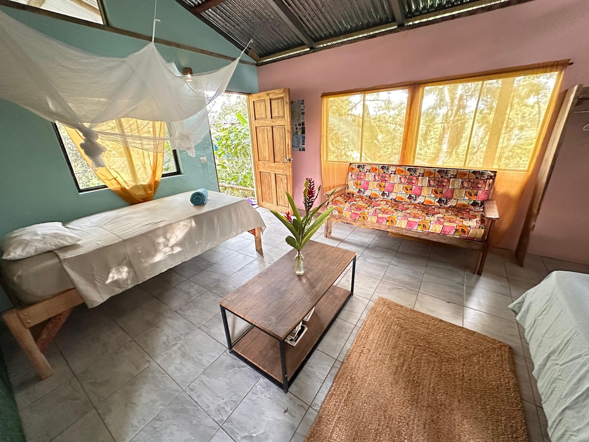 We offer an amazing room, free breakfast, free park tour (tickets not included) and with every 3 night stay a free 60 min massage!MiZaru, the most animal-friendly place on earth! Enjoy a private balcony with ocean views and a cozy hammock, where you can watch macaws fly and monkeys play in the trees. You will have a private bathroom, big queen beds and the best view. We serve a delicious free Local Costa Rica breakfast daily.