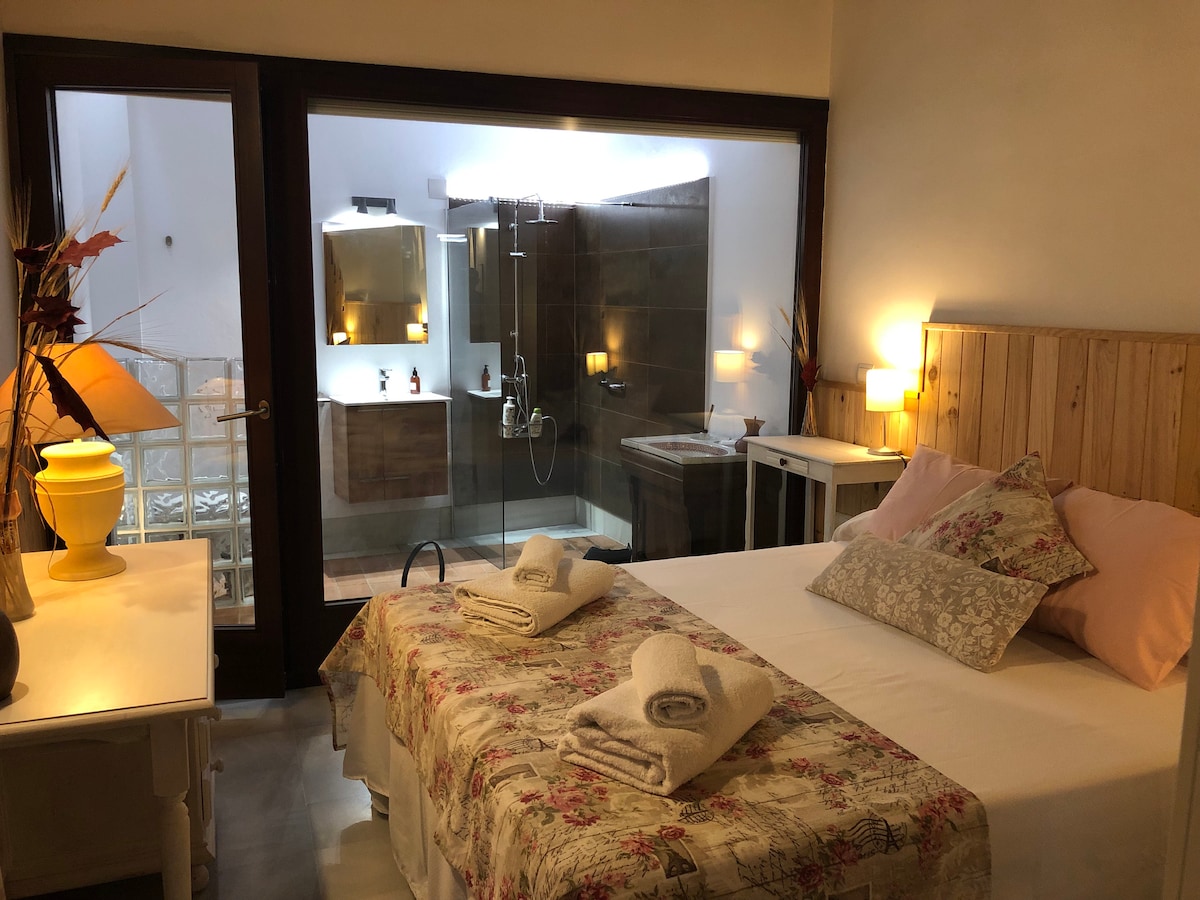 En la primera planta de esta encantadora casa cordobesa se encuentra un acogedor alojamiento ideal para parejas. El espacio destaca por su diseño diáfano y una cuidada decoración que fusiona a la perfección elementos tradicionales con un toque contemporáneo. Relájate en sus balcones, desde los que disfrutarás de las maravillosas vistas de una de las calles más emblemáticas de la ciudad, a menos de 5 minutos de la Mezquita.