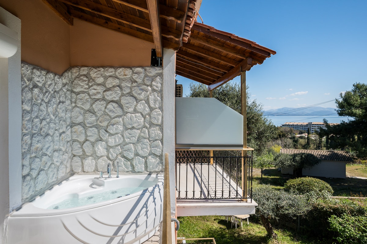 Enjoy having breakfast overlooking the ionian sea at the patio of sea la vie. Spacious house ideal for families , it's heartwarming nature vibe makes it a perfect couple's getaway too.Walking distance to restaurants, beaches , supermarket, public transit and anything else you needwithout having to rent a car. Free private parking just next to the house 2 min drive to main beach 2 min walk to closest beach 4 min drive to monastery Private jacuzzi with fantastic sea view, great for relaxing nights