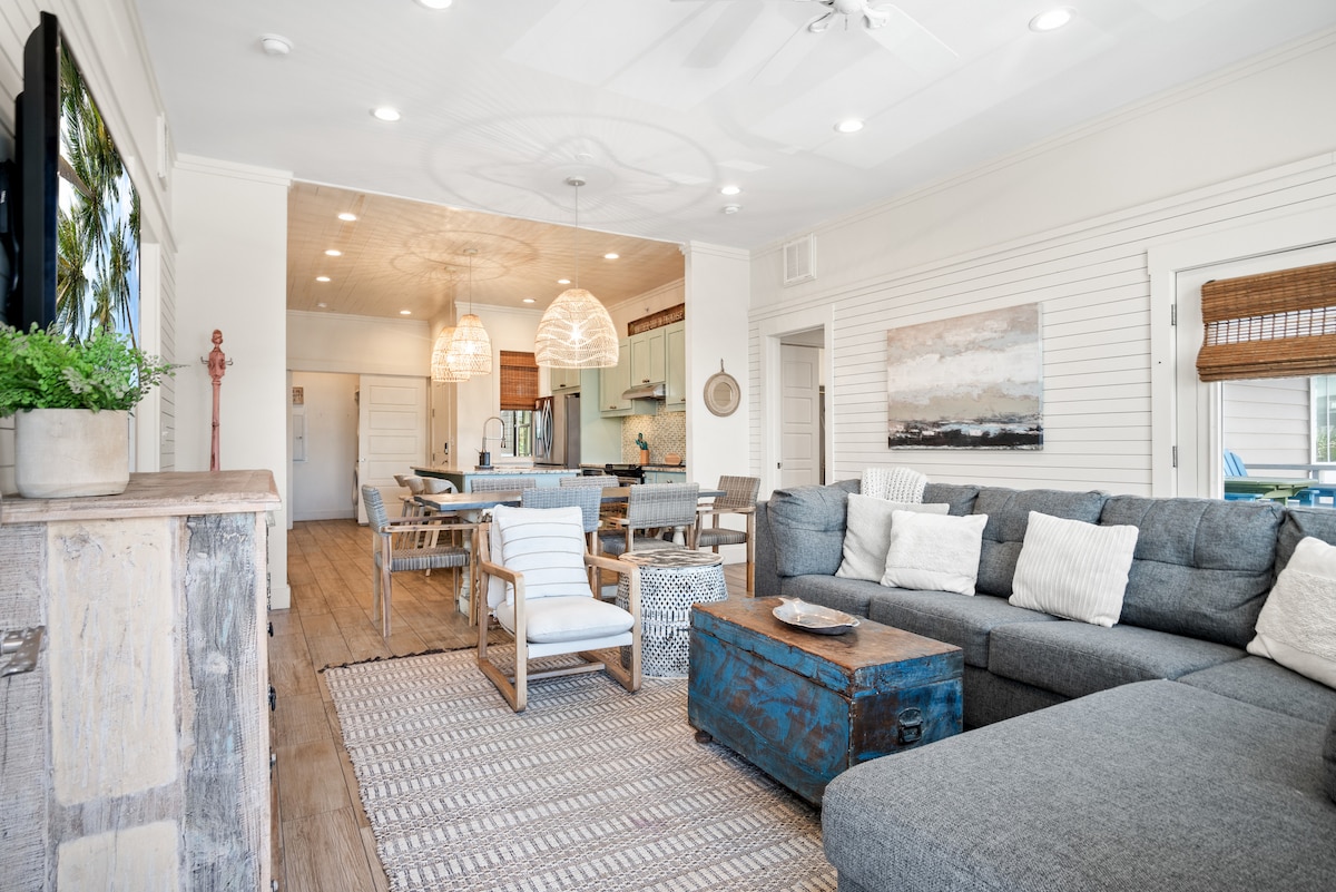 Come Shell Away is a beautiful, new 4-bedroom, 3.5-bathroom home in the heart of Port A, within walking distance of restaurants, shops, nightlife, and the beach. Enjoy entertaining in this breathtaking beach home, where you will live the beach lifestyle in luxury and comfort. This home offers everything you need for an unforgettable vacation, including EV charging, stocked kitchen, private heated pool, grill, TVs in each bedroom, full-sized washer/dryer, and well-designed styling throughout.