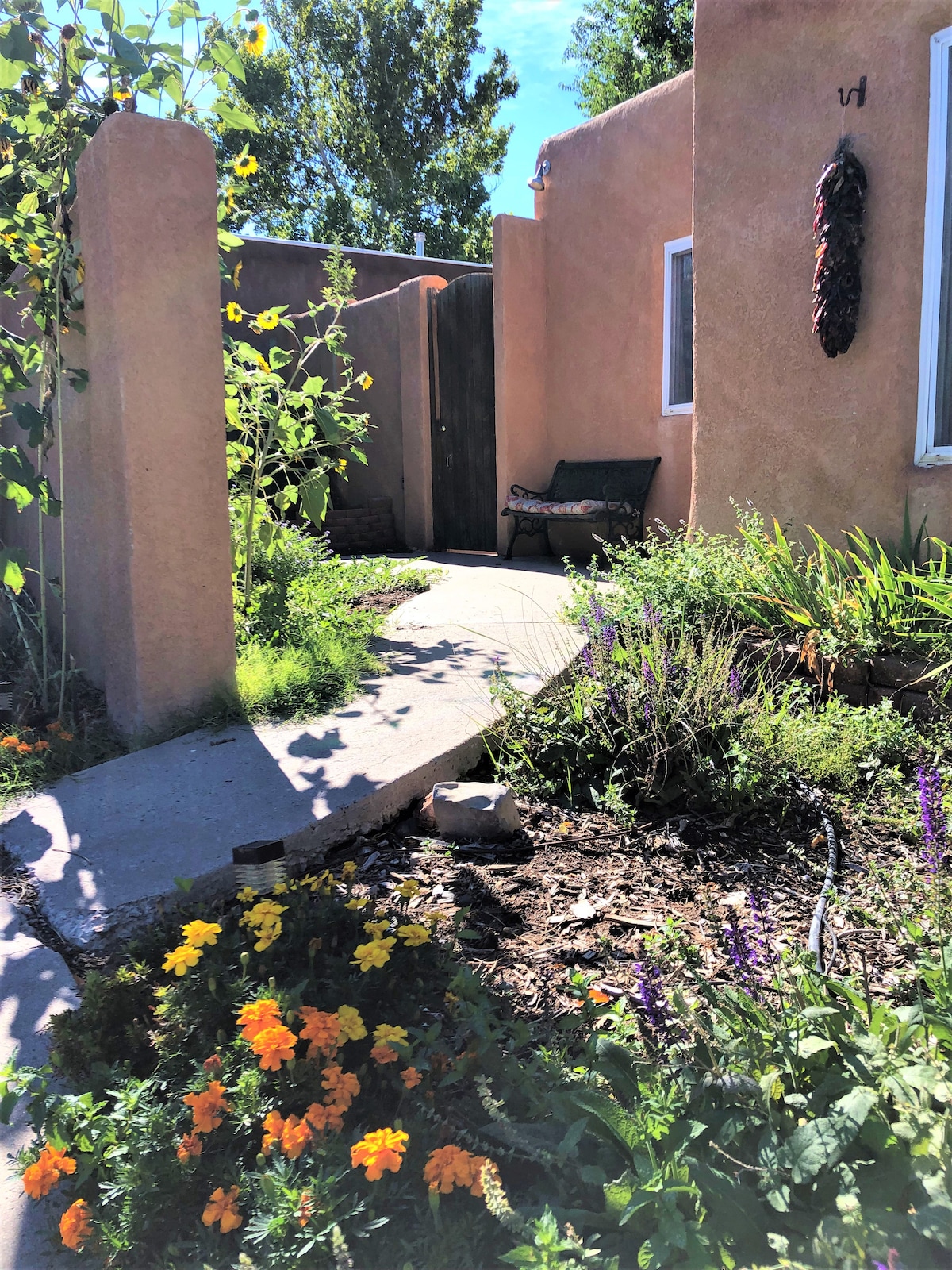 Albuquerque at its best. North Valley. Large adobe 1 bd/1 ba (1,100sq ft) private, casita guesthouse (sleeps 4). Relax under the shade of the cottonwoods. Large 1 ac property, tucked away from the city, but still centrally located. One of ABQ's safest neighborhoods. Adjacent to the "acequia" canals with miles of nature walking trails. Pool is perfect for summer. Walking distance to coffee shop, restaurant, book store, & Nature Center State Park. Close to Old Town, Downtown, UNM, & Balloons.