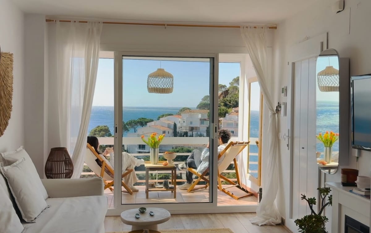 NEW APARTMENT AIGUABLAVA BEACH 100 m² + large terrace 2 suites + spacious lounge + kitchen + dining room + porch. Unbeatable sea views and PRIVATE ACCESS on foot to a beach—just a 3' walk or 1' drive to Aiguablava–Begur. No buildings in front, just nature and the Mediterranean. Air conditioning, Wi-Fi, private parking. Designed by architect Antoni Bonet and FULLY RENOVATED. Aiguablava, with turquoise waters, is one of Costa Brava’s most exclusive spots. Just 1h30 from Barcelona.