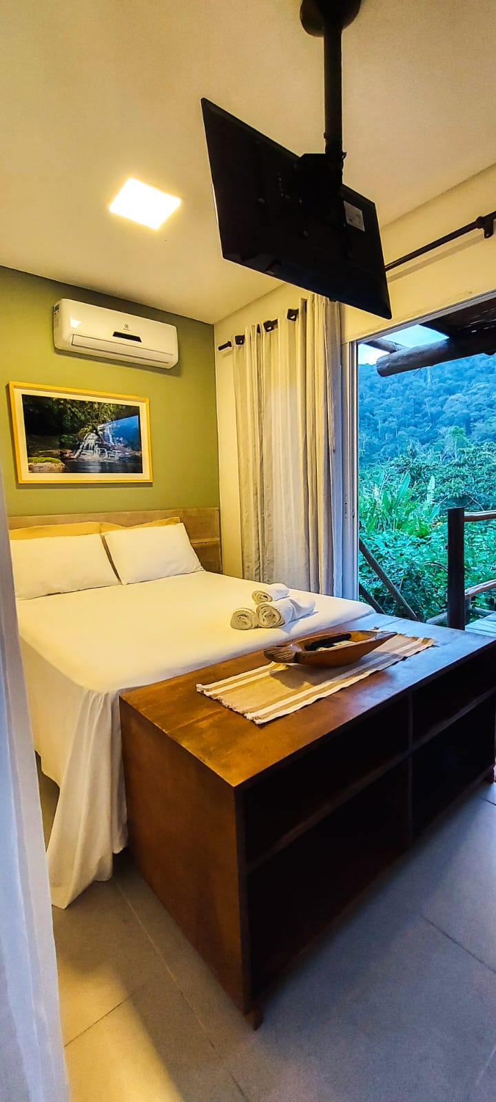 A Cabana de Vidro combina minimalismo contemporâneo e aconchego em uma hospedagem exclusiva. Oferece vista panorâmica incrível, com luz natural durante o dia e estrelas à noite. Conta com cama queen, smart TV 50”, cozinha completa e uma jacuzzi estrategicamente posicionada para aproveitar a paisagem. Ideal para casais em busca de uma escapada romântica ou para quem deseja desconectar-se da rotina e reconectar-se com a natureza. Um refúgio inesquecível para momentos únicos. @cabanadaarvore