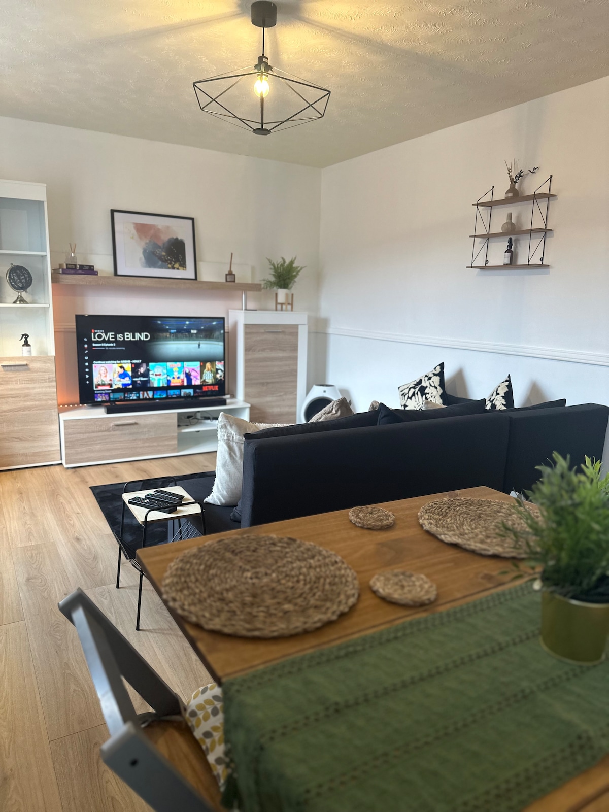 Whole Flat for you with its own access. - Driveway space included - Modern Kitchen was washer dryer - Modern Shower - Close to Coventry Canal - Close to George Elliot Hospital - Short walk away from Town Centre - TV firestick with Netflix and Disney + - Wi-Fi - Hairdryer in bathroom cupboard - Ironing board and Iron in Bedroom Wardrobe - Bike holder & wall hoop outside It’s a quite place with quiet hours between 10pm to 8am. So please be respectful of my Neighbours. Thanks for understanding:-)