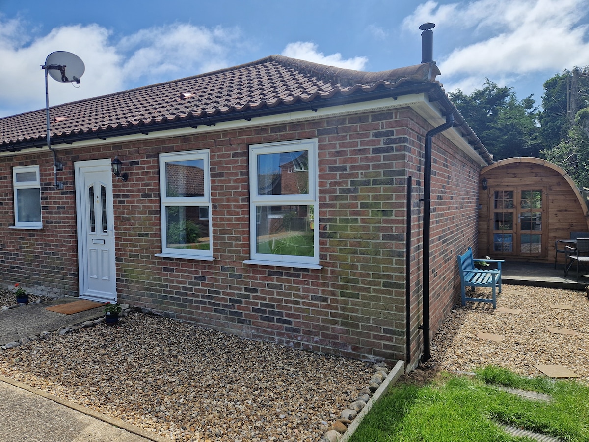 Enjoy a relaxing break in our cosy bungalow, located in Cromer and surrounded by beautiful landscapes, beaches, and attractions, all just a short walk away. A lovely home with a modern design where you can kickback and enjoy this luxurious bungalow, featuring a Jacuzzi, two king size comfortable beds, smart TV's with Sky Entertainment throughout, and a private outdoor space with a fire pit table. Cromer Pier is a short walk away and there are plenty of local restaurants and shops to explore.