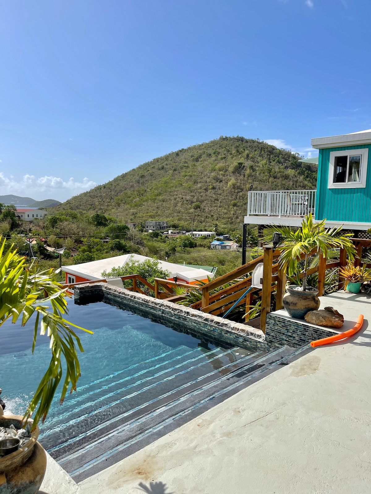 This very small 1 BR cottage lives BIG with a screened porch, SOLAR POWER, valley views, ac, dishwasher, outdoor fitness, and plunge pool. With a clean modern vibe, Sweet Spice is more laidback getaway than luxury villa. It’s an ideal HQ for 2 active STJ adventurers - but with a few extra amenities! Located off the beaten path on the quiet side of STJ, it feels secluded but is only a 5 minute drive to the shops of Coral Bay. Note: road is rough and requires a 4WD and there are LOTS of stairs.