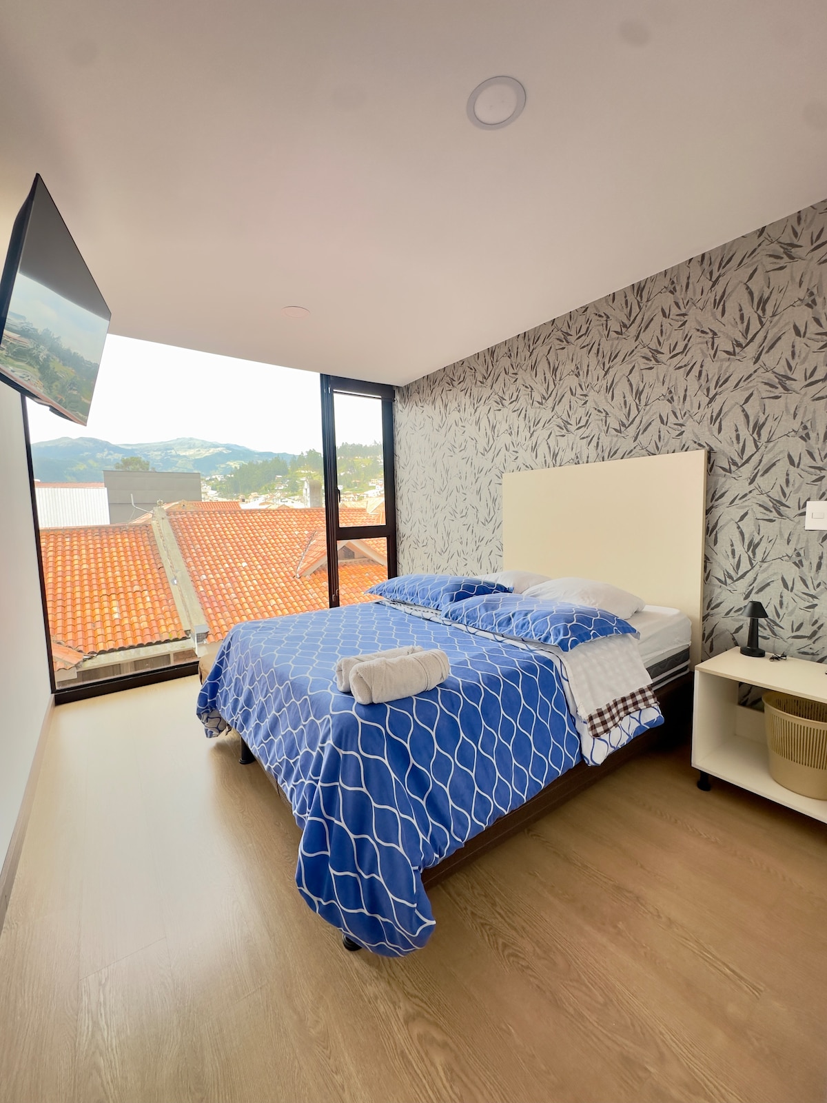 Discover Cuenca from one of the city’s most accessible and safest areas. Just 300 meters from the stadium and 8 minutes from the iconic domes, you’ll be close to cafés, bars, parks, and restaurants. The suite is modern and fully equipped: Wi-Fi, a bedroom with a queen bed, a full kitchen, hot water, Smart TV, washer, and dryer. Enjoy a rooftop with views of the domes and a 60” screen. Relax and experience Cuenca from a warm space designed for your comfort. Your ideal stay awaits!