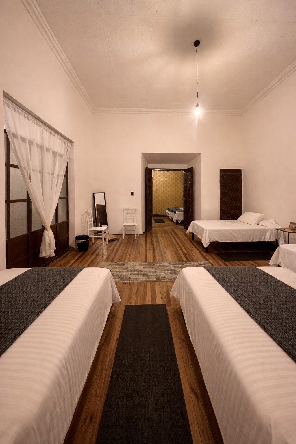 Habitación Doble con baño privado, 2 camas de 2 plazas en esta hermosa y renovada casa patrimonial convertida en hostal, cuenta con calefacción central, agua caliente, SmatTV, WiFi, Netflix, y CCTV. Un lugar seguro, a 5min a pie de: Clínicas, Registro Civil, Bancos, Universidad Estatal, Estadio, Hospital, La Catedral, Restaurantes, Bares y Discotecas. Ubicado estratégicamente en el centro histórico de Cuenca, Honorato Vazquez 5-66 entre Mariano Cueva y Hermano Miguel.