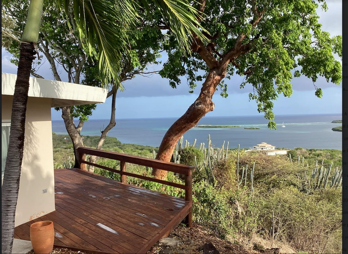 Casa Jade is a serene escape surrounded by lush greenery and stunning views of a nearby bahía, walk distance from Zoni Beach. The cozy, air-conditioned bedroom offers a restful retreat after a day of adventure. Enjoy the company of friendly geckos, hummingbirds, deer, and majestic peacocks. The grand gumbo limbo tree stands proudly in the center of the deck. As a tropical island, you may encounter a few insects, but we provide repellents, candles, and bug zappers for your comfort. Visit CasaJade