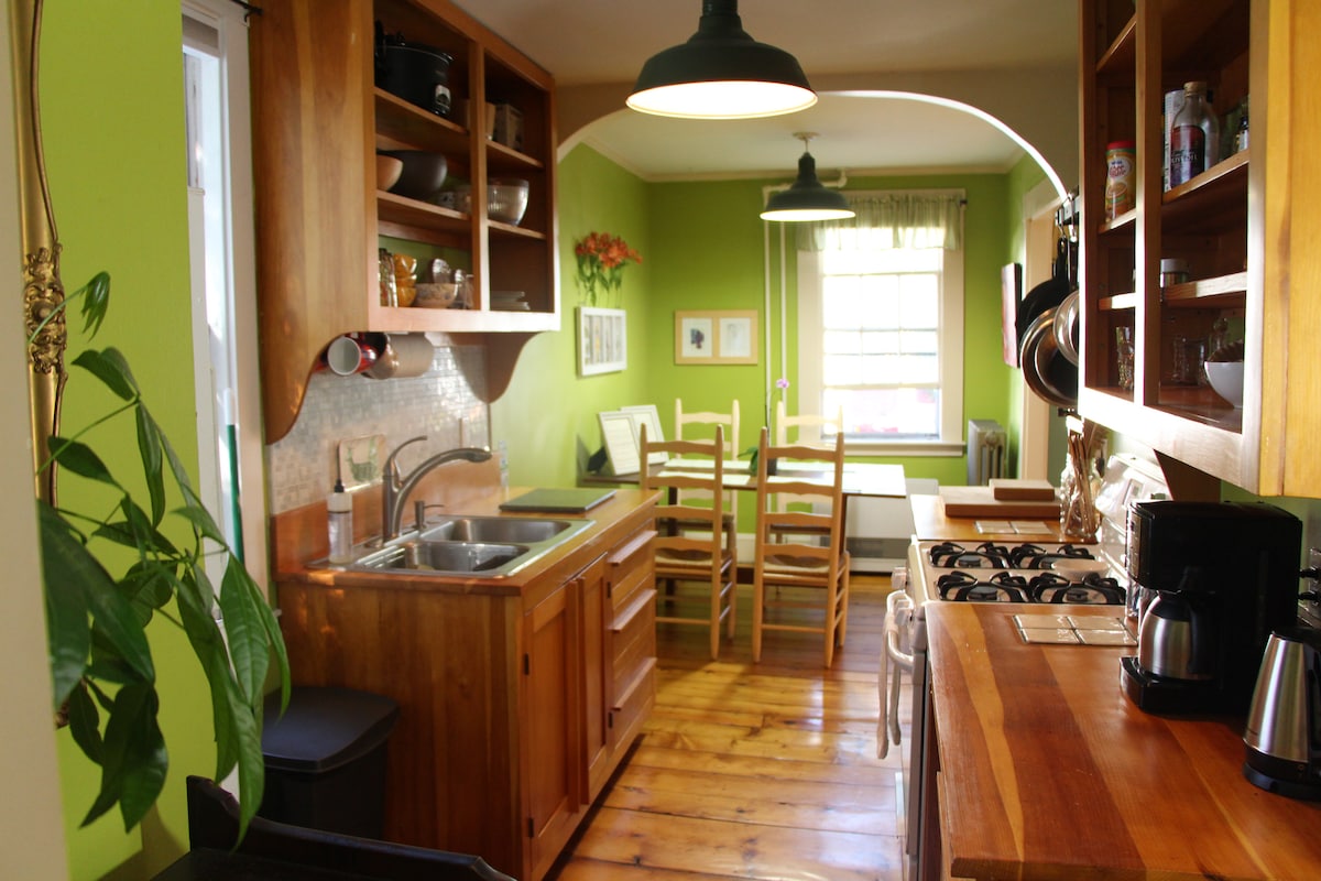 Retro BnB in The Heart of Portland's East End offers a combination of 70's mod charm with a vibrant comfortable style. Sunny, first floor back apartment with private entrance, one hybrid coil/thermarest queen bed overlooking yard with lovely perennial garden, bathroom with central, well appointed kitchen/dining room. This space is perfect for one couples looking for a cozy home base hideaway. A short walk to gourmet restaurants, cafes, East End beach and all Portland peninsula has to offer!