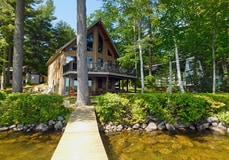 Quiet lakefront home on 3.7 acres of birch and pine woods. Dock, fine swimming, outdoor fireplace, gazebo, gardens, lawn, playhouse and swings, sunsets, sometimes loons. If you include the optional cottage it sleeps 13. The whole family can relax in this peaceful hideaway.