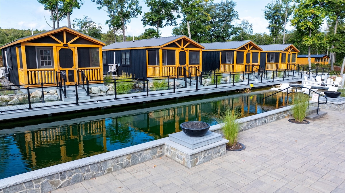 706 - 2 Bedrooms, 1.0 Baths (Sleeps 4) OCCUPANCY LIMIT 4. The cabin includes a private bedroom and bath, plus a common room with kitchenette. This two-bedroom cabin is a short walk to the pond side floating boardwalk. One bedroom has a queen bed, and the other bedroom is a bunk bed. Plus, a small futon in the common room. This allows for up to 4 guests. Guests will also have access to the natural pond. You can also enjoy Sebago Lake with private access for guests staying at the estate.